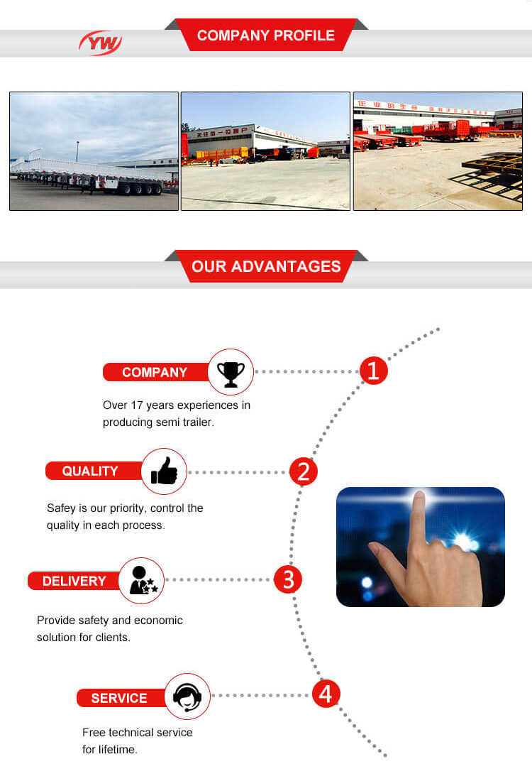 SHANDONG YONGWANG TRAILER MANUFACTURE CO.LTD. established in 2002. As an appointed Special Vehicle Manufacturer approved by Development and Reform Com-mission of China, now we are the leading semi trailer manufacturer with eight advanced production lines, three hundred employees and various of semi trailers.